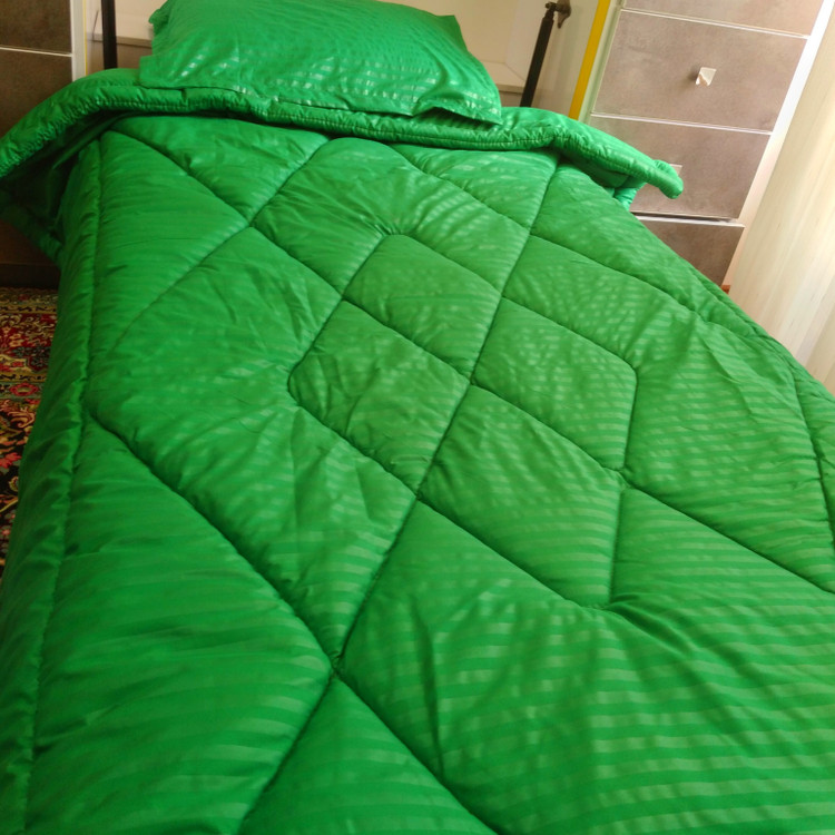 باسلام روتختی یکنفره ۴تکه سبز جنس تمام نخ میکروهتلی با الیاف ۳۵۰ گرمی ویرجین با پف مناسب لحاف بسیار با کیفیت ک بادوام بدون رنگ رفت و پرزدهی دوخت صنعتی و مغذی دوز جهت دوام بیشتر کار و تغییر حالت ندادن بعد استفاده مکرر شامل لحاف ۱۶۰ در۲۳۰ روبالشی ۵۰ در۷۰ کاورکوسن ۴۰در۴۰ ملحفه کشدوز کاورتشک ۹۰در۲ بعلت انبار گردانی نصف قیمت تعداد و مدت محدود از هر جایی خاستین استعلام کنید ب قیمت عمده روتختیپلی استر حزاج ویژه و استثنایی از قیمت تعجب نکنید واقعیست