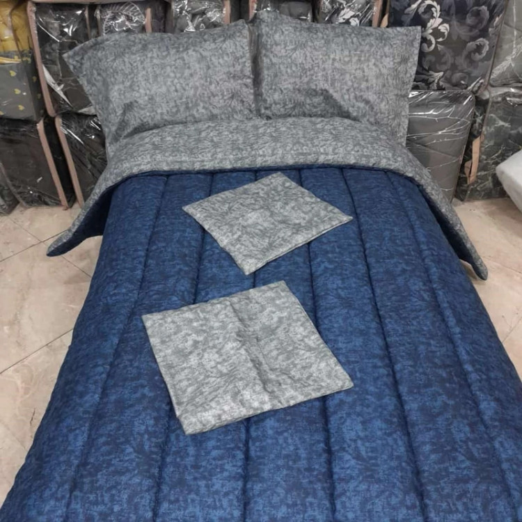 روتختی دونفره جدید نخ پتیته دو رو طوسی و سورمه ای 6 تکه الیاف ویرجین 350گرمی قیمت عالی