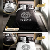 روتختی دونفره برند پارلاک 8تکه کدA70طرح ورساچه سفید مشکی الیاف ویسکوز 450گرمی میکروتنسل گیاهی با لیبل و کارت اصالت