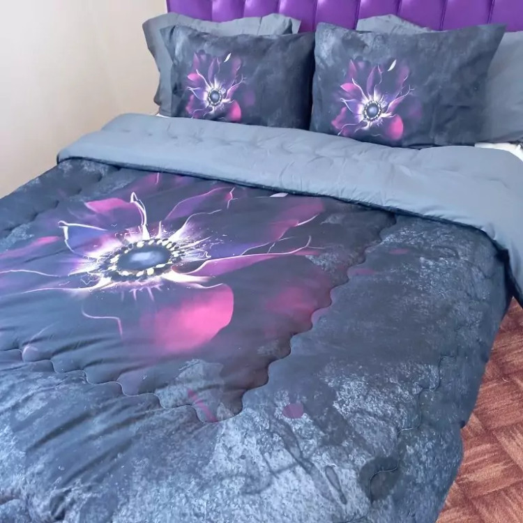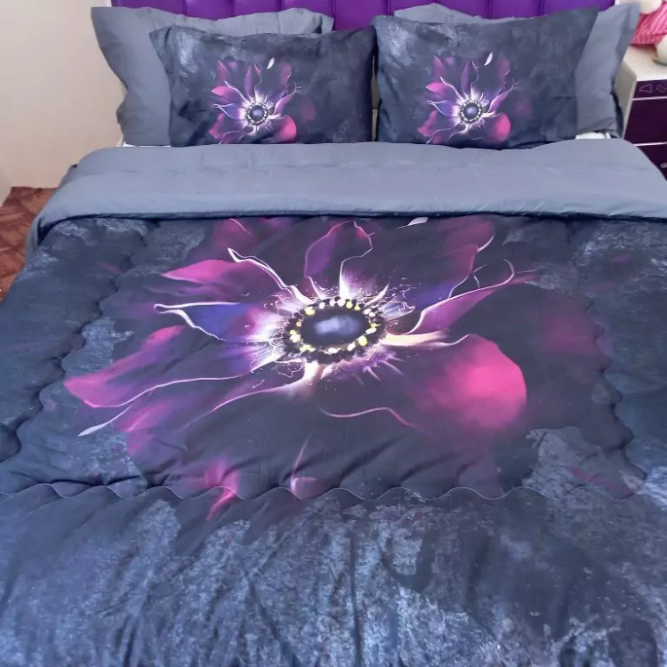 روتختی دونفره ترکسان طرح ابربادی گل ذغالی طوسی الیاف400ویسکوزترک